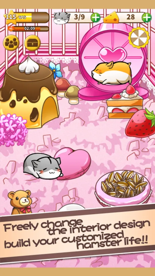 ・Press the hamster longly and you could move the hamster.You also can change your furniture or decoration.