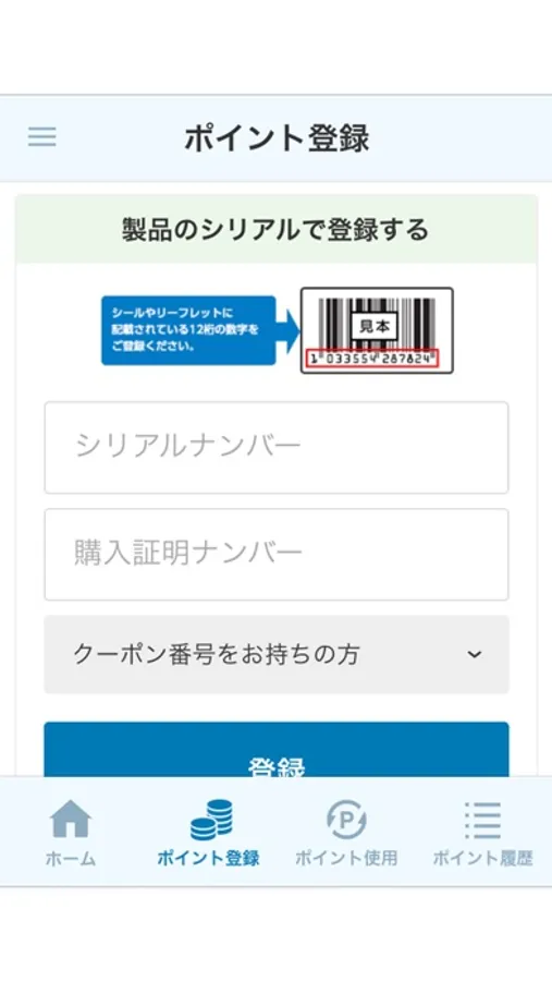 製品に添付されているシリアルナンバーと、購入証明ナンバーから、購入ポイントを貯めて頂けます。