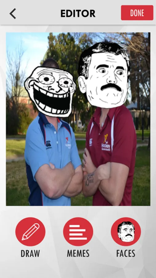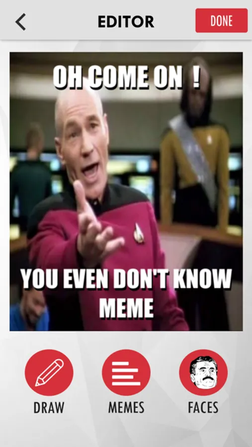 - Pick from a selection of awesome meme's faces, draw manually on pic