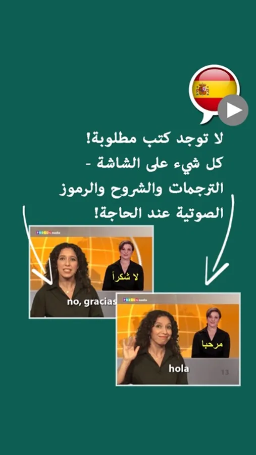 استمع إلى اللغة، اقرأ الترجمة وكرر كل كلمة أو جملة تسمعها – ليس مرة واحدة، لكن مرتين! سهل الفهم، سهل الاستيعاب والتعلم – بسيط في التحدث!
