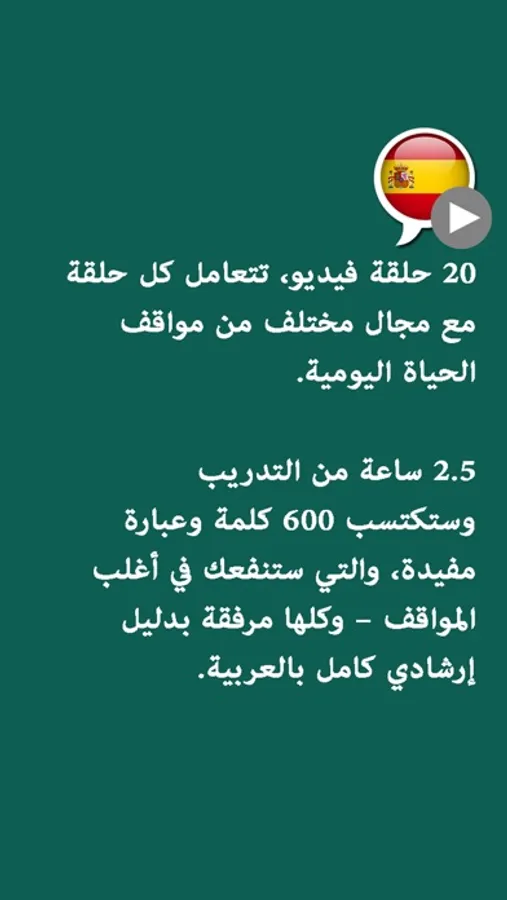 -2.5 ساعة من التدريب وستكتسب 600 كلمة وعبارة مفيدة، والتي ستنفعك في أغلب المواقف – وكلها مرفقة بدليل إرشادي كامل بالعربية.