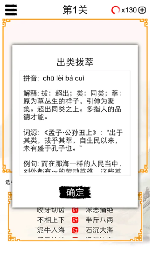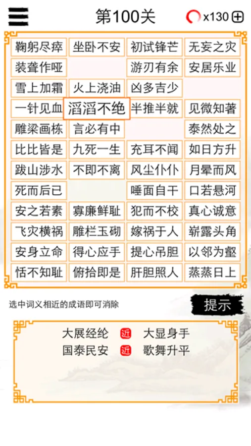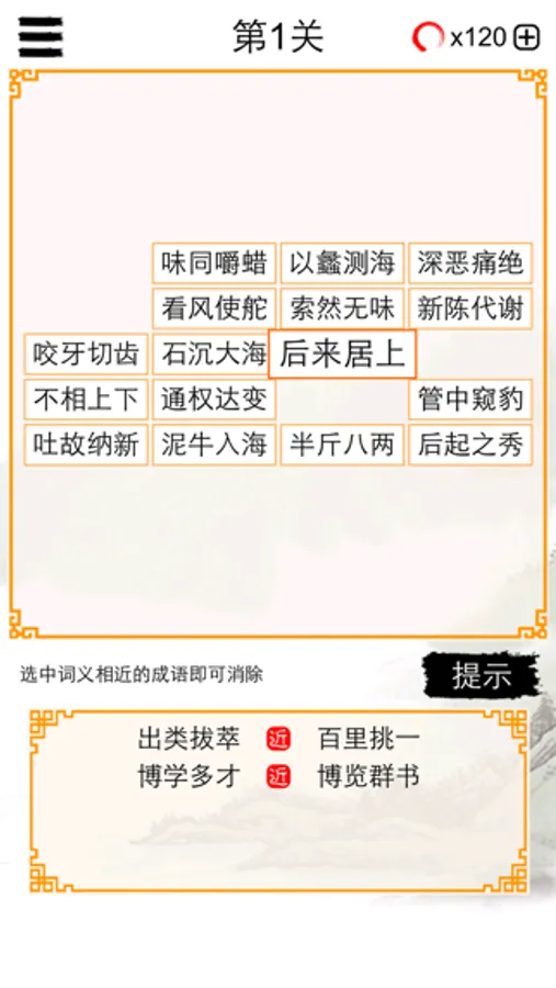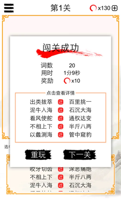 100个由易到难的关卡,挑战你的成语词汇量。