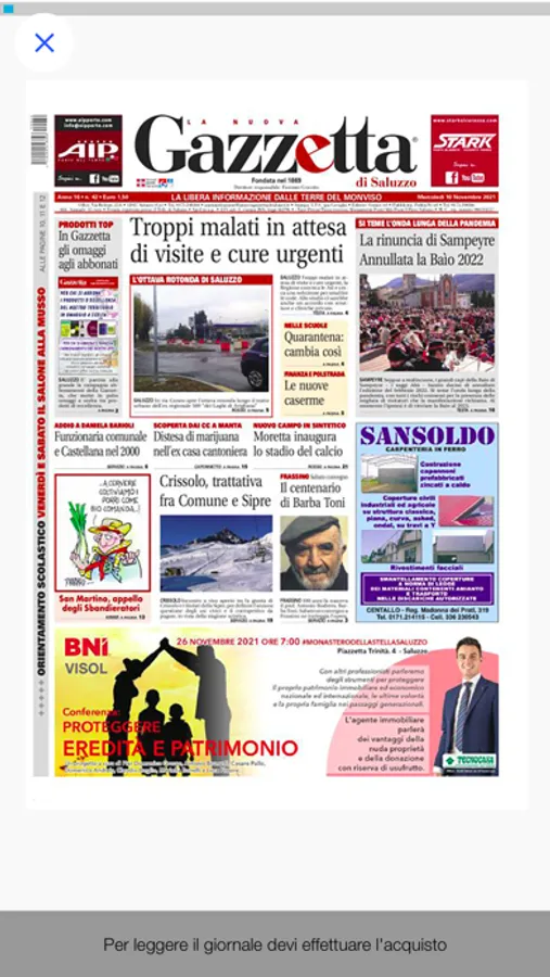 Puoi consultare gratuitamente la prima pagina o acquistare l'edizione completa. Sfogliando le pagine del giornale, ingrandendo i contenuti, ruotando il dispositivo, sarai libero di leggere in piena comodità e nella modalità preferita.