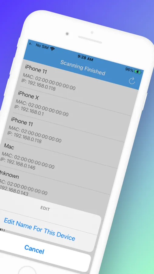 √ Scan Shows Attached Devices Along With Their Device IP and MAC Address