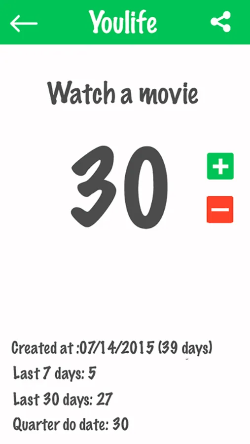 Use Youlife to manage and keep track of any of your daily life action. The applications is personal and interactive. Indeed you add any “actions” you wish to follow and then keep track of how many times you performed that action.