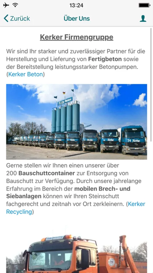 Bei der Kerker Firmengruppe sind Sie in besten Händen! In der App finden Sie Informationen über unsere Unternehmen Kerker Beton GmbH, Kerker Tiefbau GmbH und Kerker Recycling GmbH. Mittels der App können Sie des weiteren Kontakt mit uns aufnehmen, Ihre Anfrage an uns senden sowie unsere Öffnungszeiten finden. Kontaktieren Sie uns einfach und bequem über das Kontaktformular.