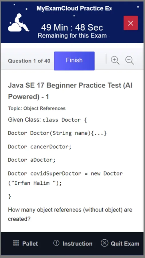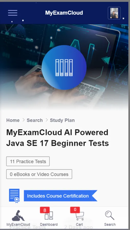 Study Plan is the top most root and all the other items whether it is exams or electronic books or any other artefacts all are associated with the study plan. There are three types of artefacts attached to any study plans namely Practice exams, Quiz exams and eBook.You can take practice exams and check the results at the end of the exam. Quiz exams are similar to practice exams but the answer will be shown instantly after answering each question.