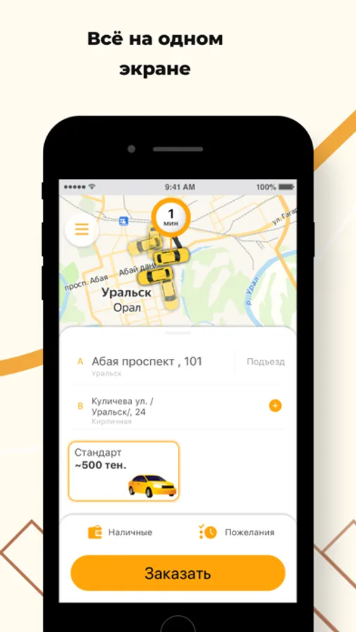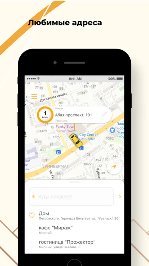 Откройте приложение, укажите адрес и закажите такси нажатием на одну кнопку.