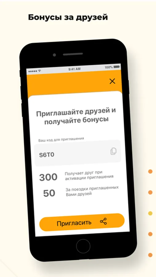 Приглашайте друзей по реферальному коду и получайте бонусы за их поездки. А также, за поездки их друзей. Используйте бонусы для оплаты поездок в Такси Азия Уральск.