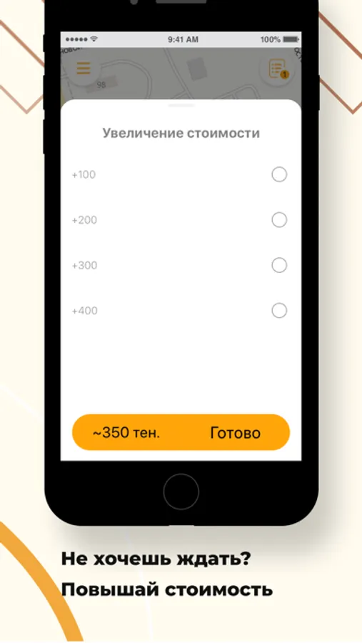 Едете на встречу в час-пик и не получается найти машину? Увеличьте стоимость заказа. Так водитель быстрее заберет ваш заказ во время повышенного спроса.