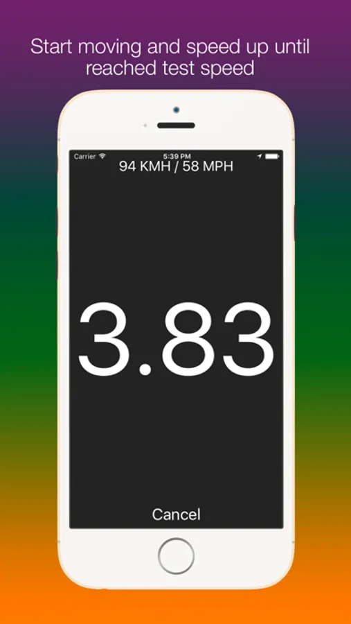 5. When you reach speed 100kmh=62.3mph timer will stop.