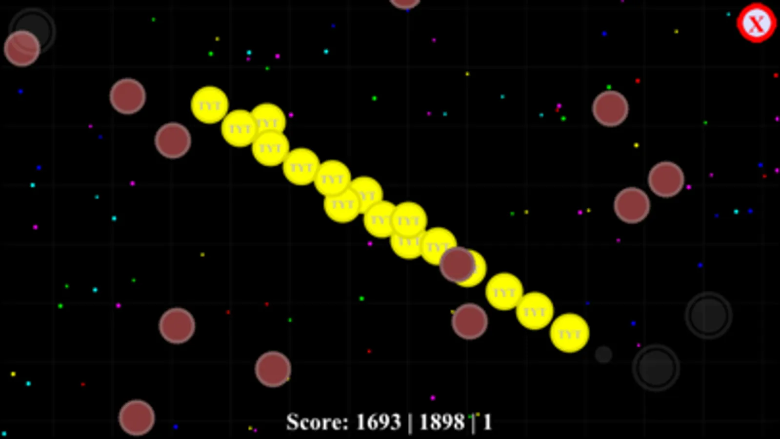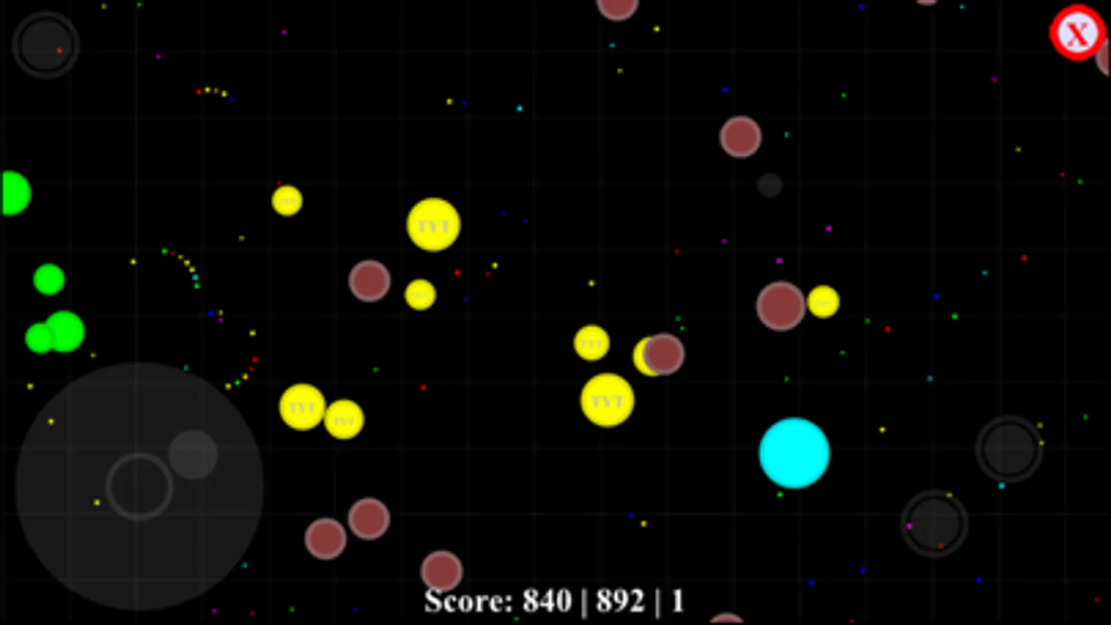 In this game you will have the task that you raised dot are managed by touching the screen anywhere to dot move to that location and eat food, the more dot will eat more food to become larger dot, the game has a lot of big dot and small dot, if you go and eat small dot instead of eating food, your dot will grow faster, and avoid the boom left out otherwise your dot will explosion and small pieces separated and other vulnerable dot to swallow. Alternatively you can press the button to take the split and eat other dot easier or you can give them to other dot or create boom by pressing the button opposite are called nodes created food.