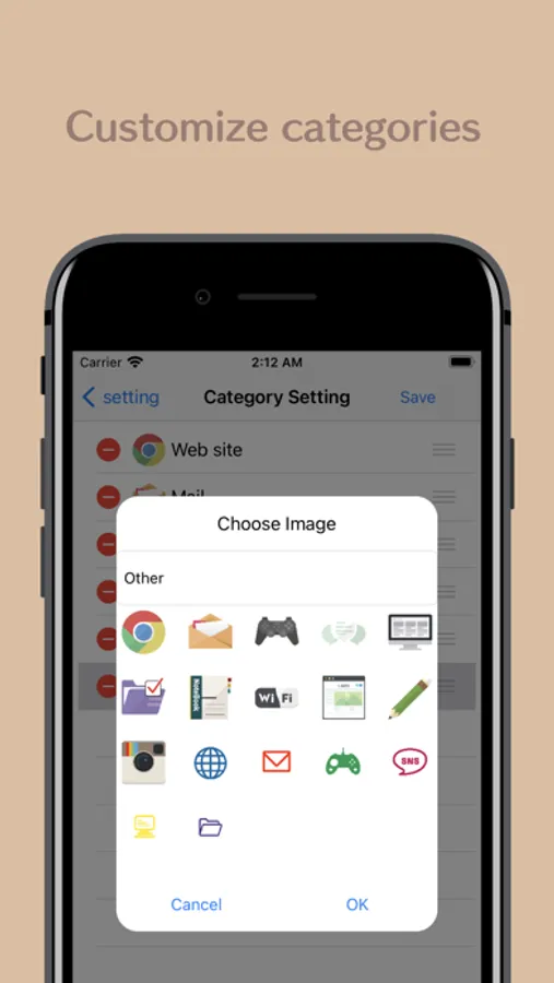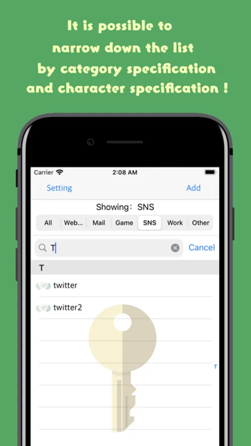 ・ Categories can be created by yourself. Initially, "Website", "Email", "Game", "SNS", "Work", and "Other" are registered.