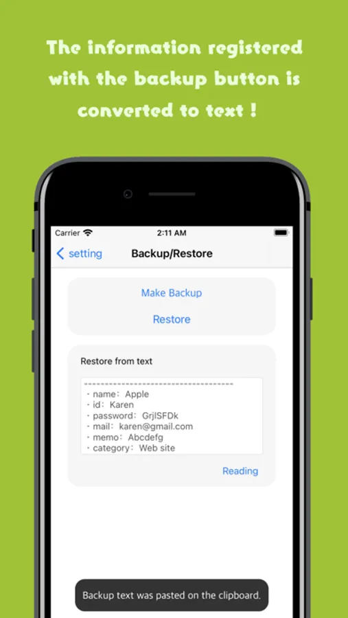 It is possible to restore by directly specifying the text obtained with the "Create backup button". Please use it at the time of terminal migration. (The method of data transfer at the time of device transfer is described below)