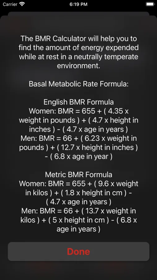 - Description and formula for each calculator