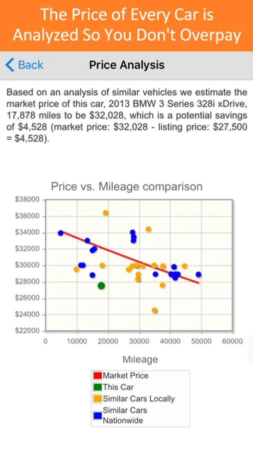 Our systems calculate the market value of every used car car to help you see whether the asking price of a car is fair or whether the seller is out to gouge the shopper. Cars that are underpriced relative to our calculated market price are highlighted as being priced "Below Market" while overpriced cars are indicated as "Above Market."