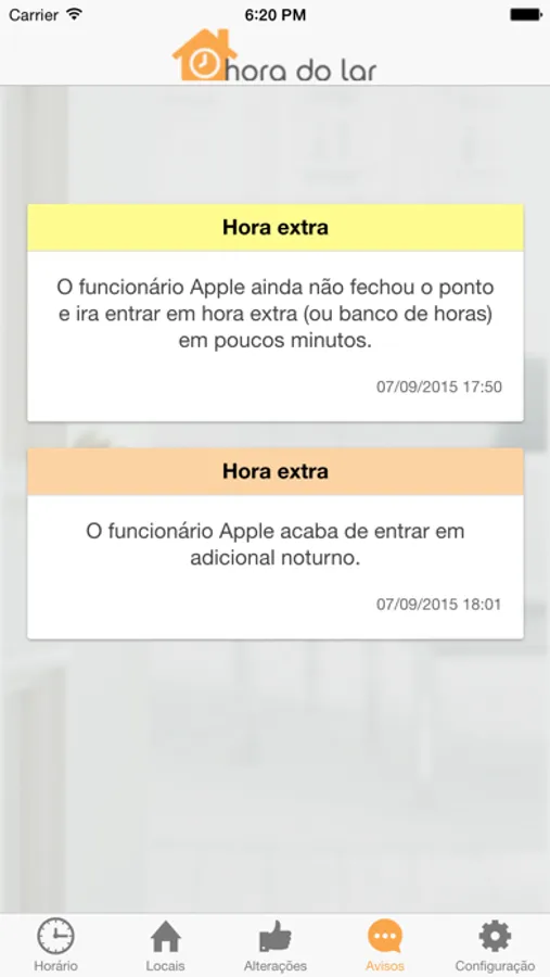O usuário também recebe notificações quando está entrando em horário extraordinário e quando está entrando em horário noturno, além de receber as notificações referentes a pontos não batidos.
