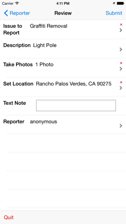 Quickly and easily report issues to the City for Clean up. Describe the issue, take a photo, update the location, and let the City do the rest. Opt in to receive status updates when the report has been addressed.
