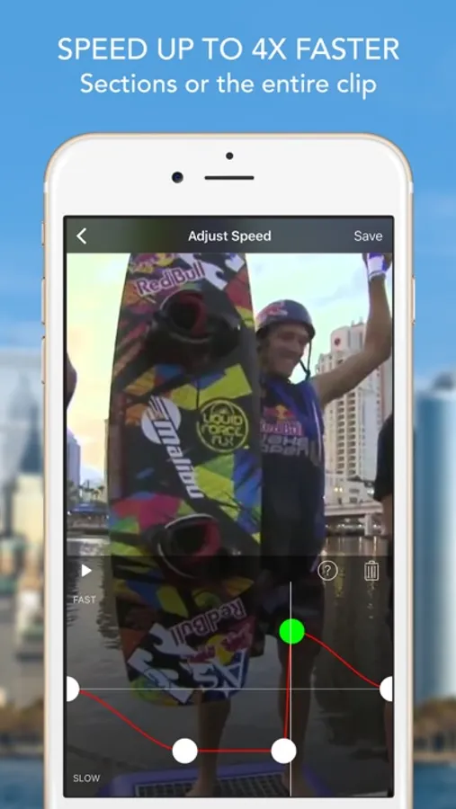 Speed up or slow down sections of video with FREE saving and NO WATERMARK! Supports portrait or landscape operation (on iPad), corrected audio pitch and unrestricted video length.