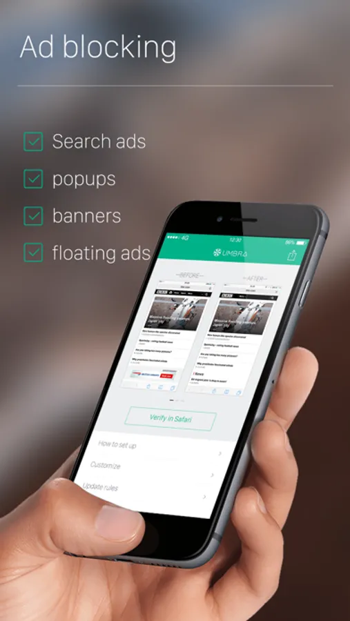 Umbra helps you block the ads when surfing websites with Safari in iOS9 for iPhone/iPad. It helps to improve website loading speed, save data and battery. It’s free and easy to use.