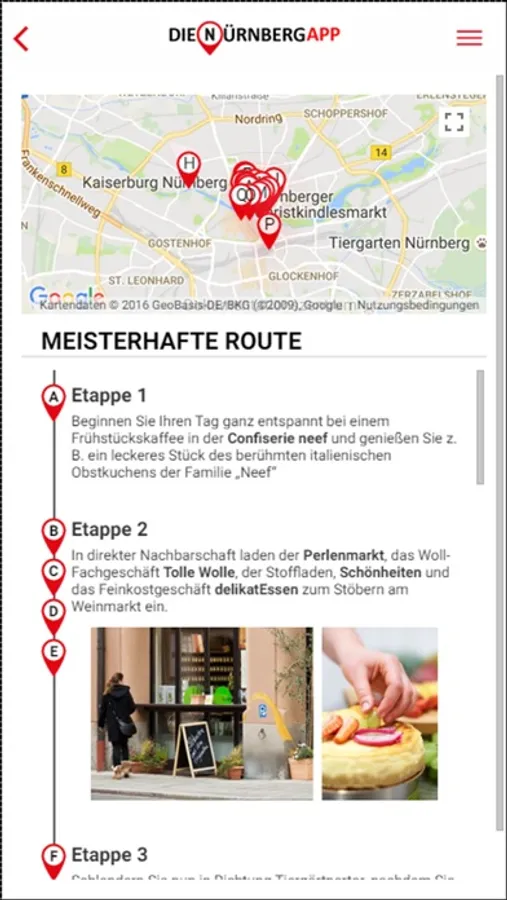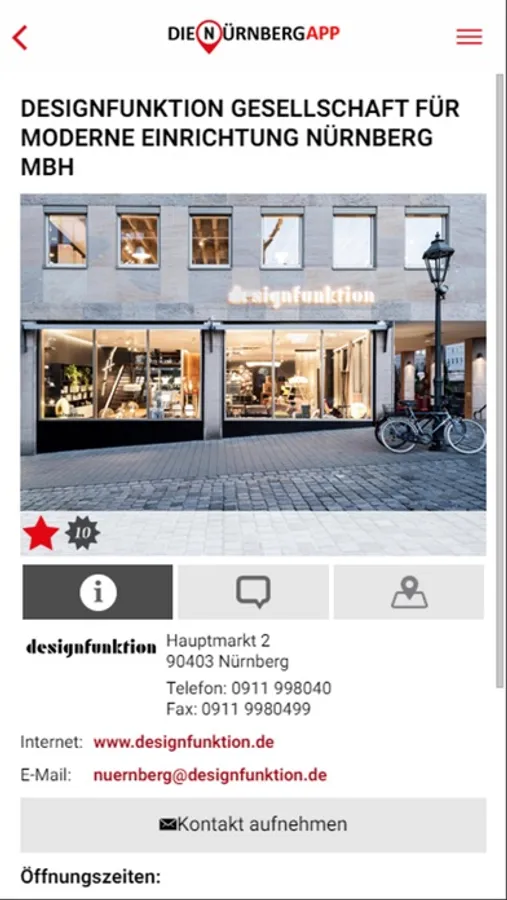 Der kostenlose Einkaufs- und Gastroführer von "Erlebnis Nürnberg e. V." für Nürnberger und Besucher der Frankenmetropole - Einzelhändler, Gastronomiebetriebe, Dienstleister und Handwerker ganz bequem finden. Die Einträge lassen sich übersichtlich nach Kategorien oder nach Stichworten durchsuchen. Zusätzlich ist das zielgenaue Einschränken nach Stadtbereich von der Altstadt bis zu den Außenbereichen möglich. Alle Fundstellen werden in einer Übersichtsliste und auf einem interaktiven Stadtplan ausgegeben. Über die App lassen sich die Verkaufsstellen für den "Nürnberger Zehner" ebenso nachschlagen wie alle Unternehmen, die diesen geschäfts- und markenunabhängigen Gutschein akzeptieren. Außerdem ist der Veranstaltungskalender für Nürnberg integriert.