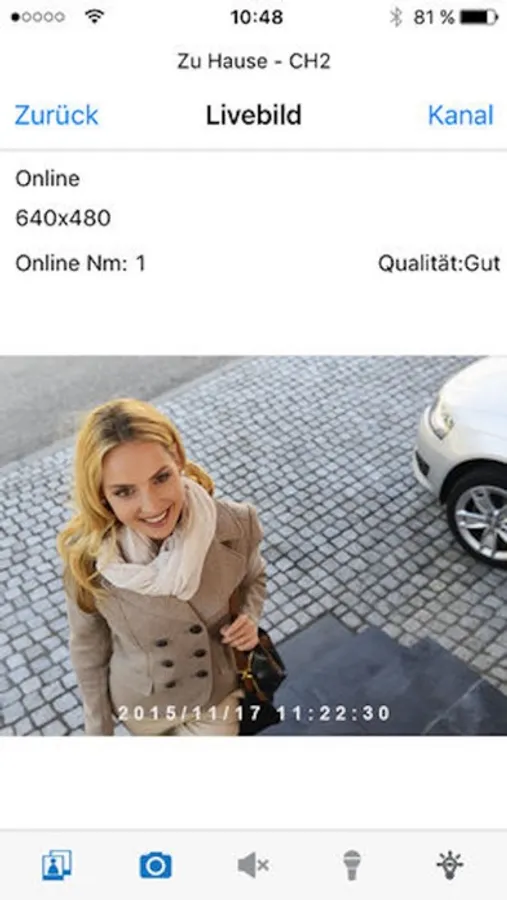 o Bei angemeldeter Kamera mit Strahler ist dieser per App steuer- und einstellbar