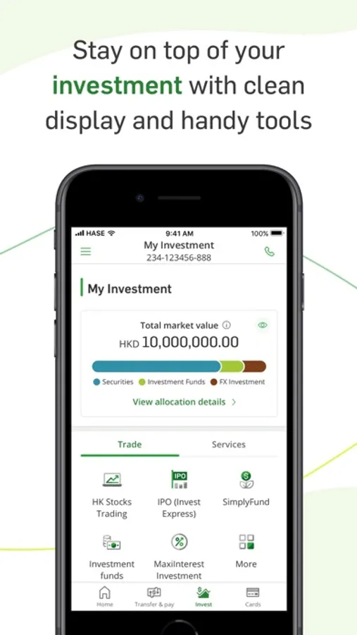 • Invest at ease in securities, funds, bonds and more with our user-friendly interface