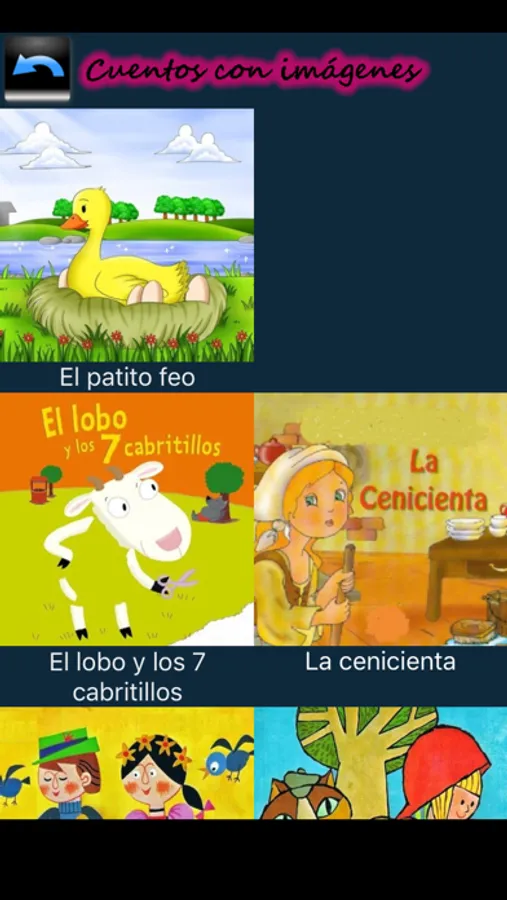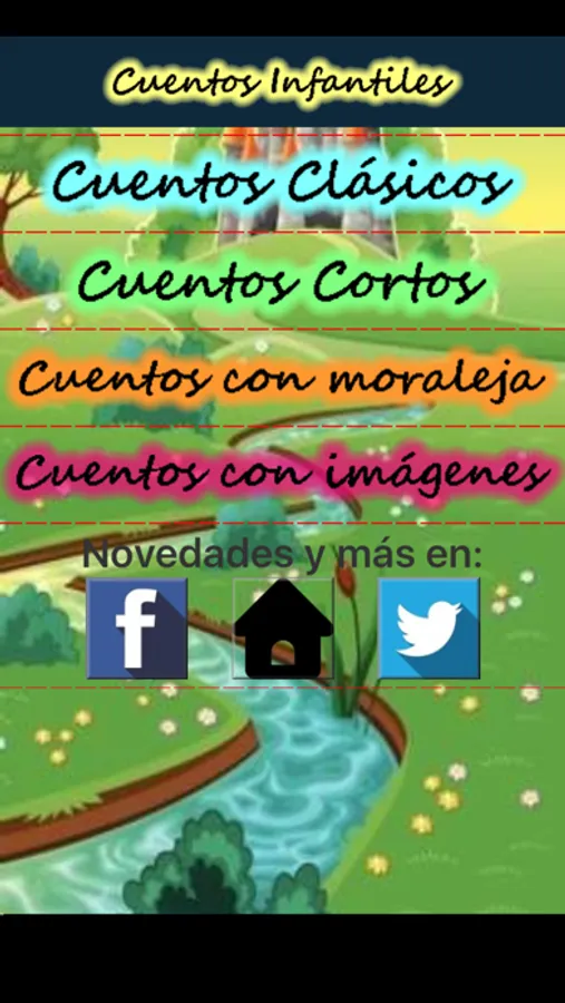 Actualmente la app incluye diversos cuentos separados en 4 categorías entre los que se incluyen: