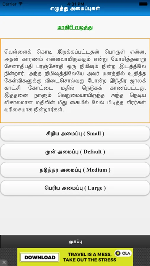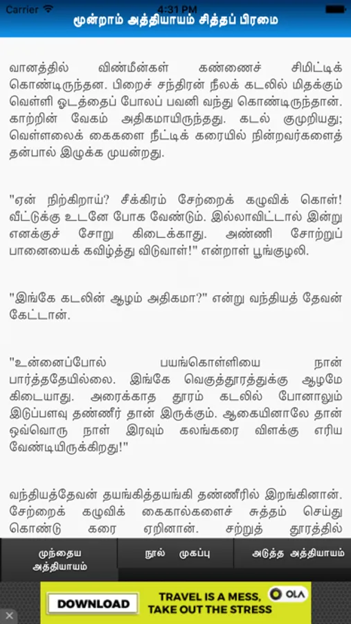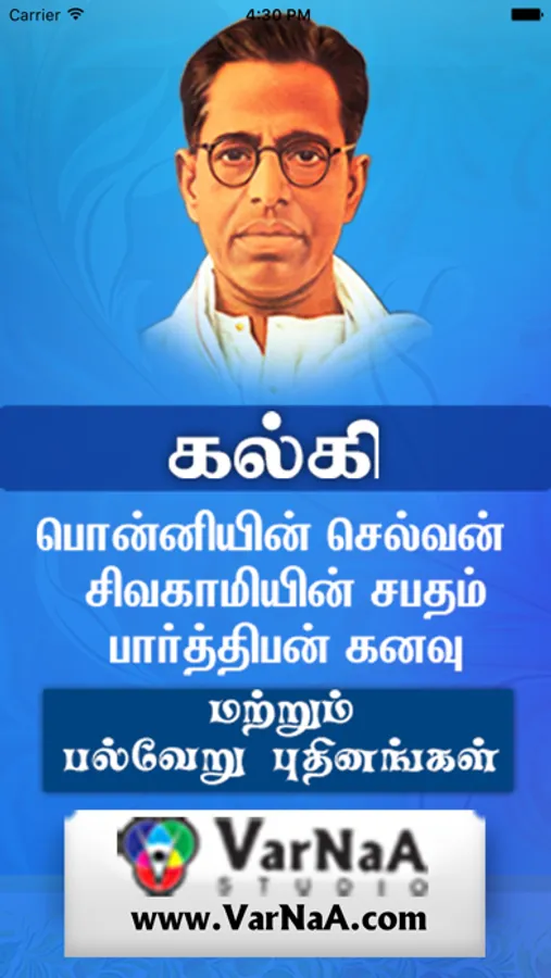 This app consists all the literature works done by Kalki, short stories, novels, editorial and political writings. Kalki had the genius to classify the historical and non-historical events, historical and non-historical characters and how much the novel owes to history. In his introduction to Sivakamiyin Sabadam and conclusion to Ponniyin Selvan, he explains the percentage of fact and fiction. Kalki's interest in history, the features of his historical novels and the popularity they gained, made others enter this vast and new field and contribute works of merit.