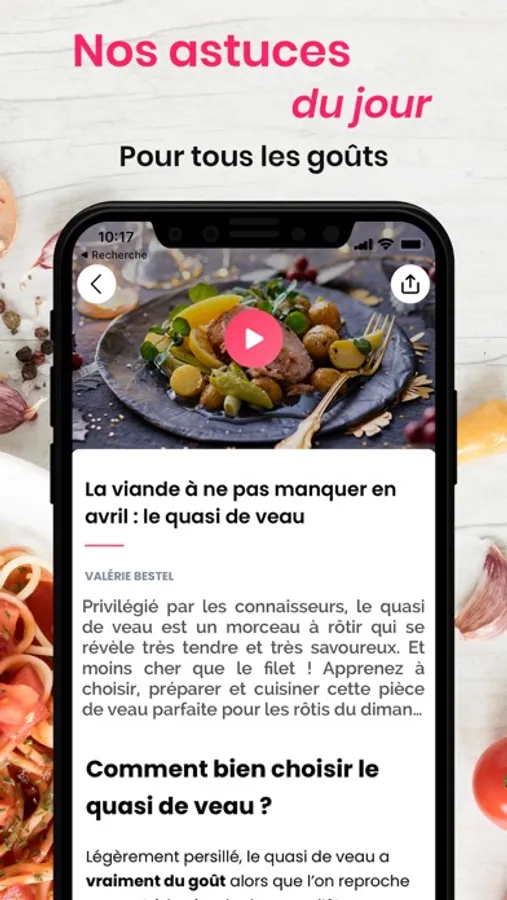 Cuisine Actuelle, c’est des nouvelles idées recettes chaque jour, des conseils de préparation pour ne plus rater votre cuisson, des suggestions en fonction de ce qu’il y a dans votre frigo, ou encore des listes de courses pour cuisiner les plats qui vous donnent envie…