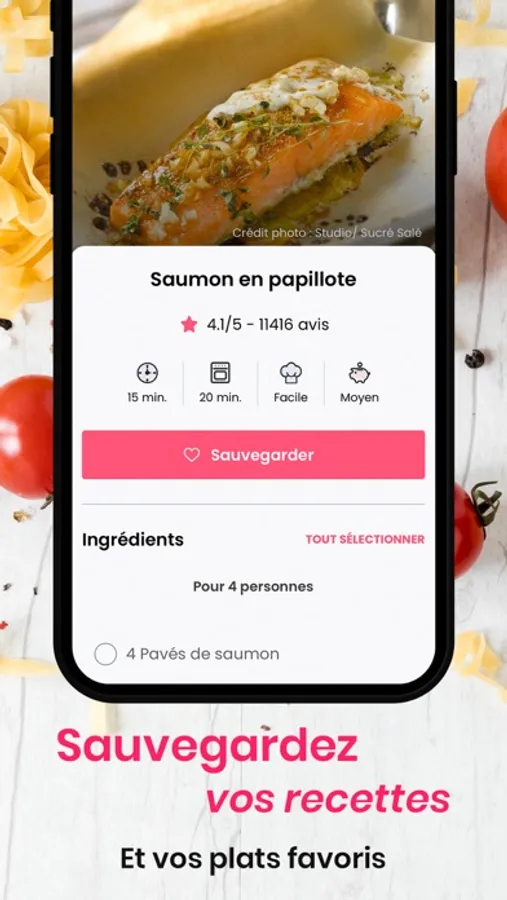 Retrouvez des milliers d'idées recette avec la possibilité de sauvegarder vos coups de cœur, d’ajouter les ingrédients nécessaires à leur réalisation à votre liste de courses, et bien sûr nos conseils pour un menu réussi !