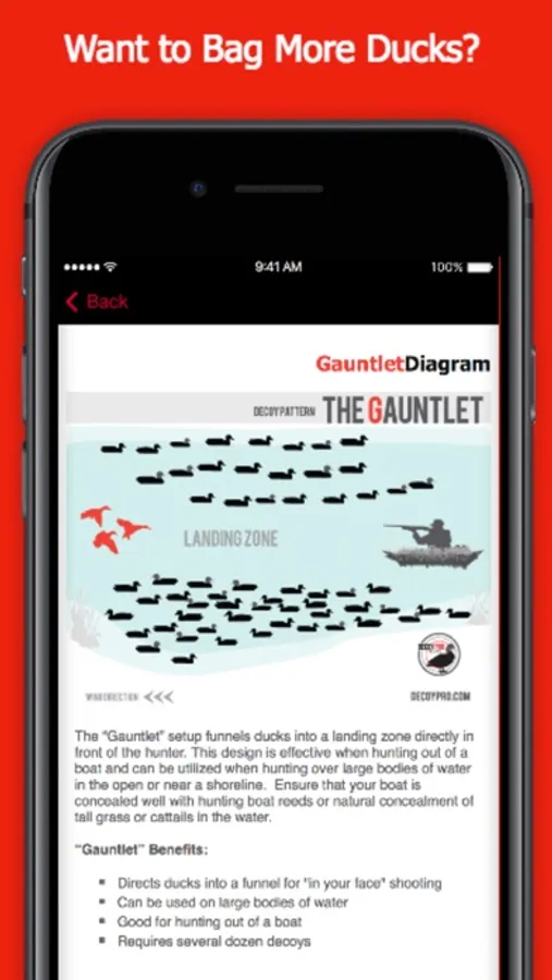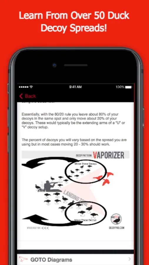 - Each diagram is clickable for detail with decoy placement strategies and learn how each diagram can help you bag more ducks