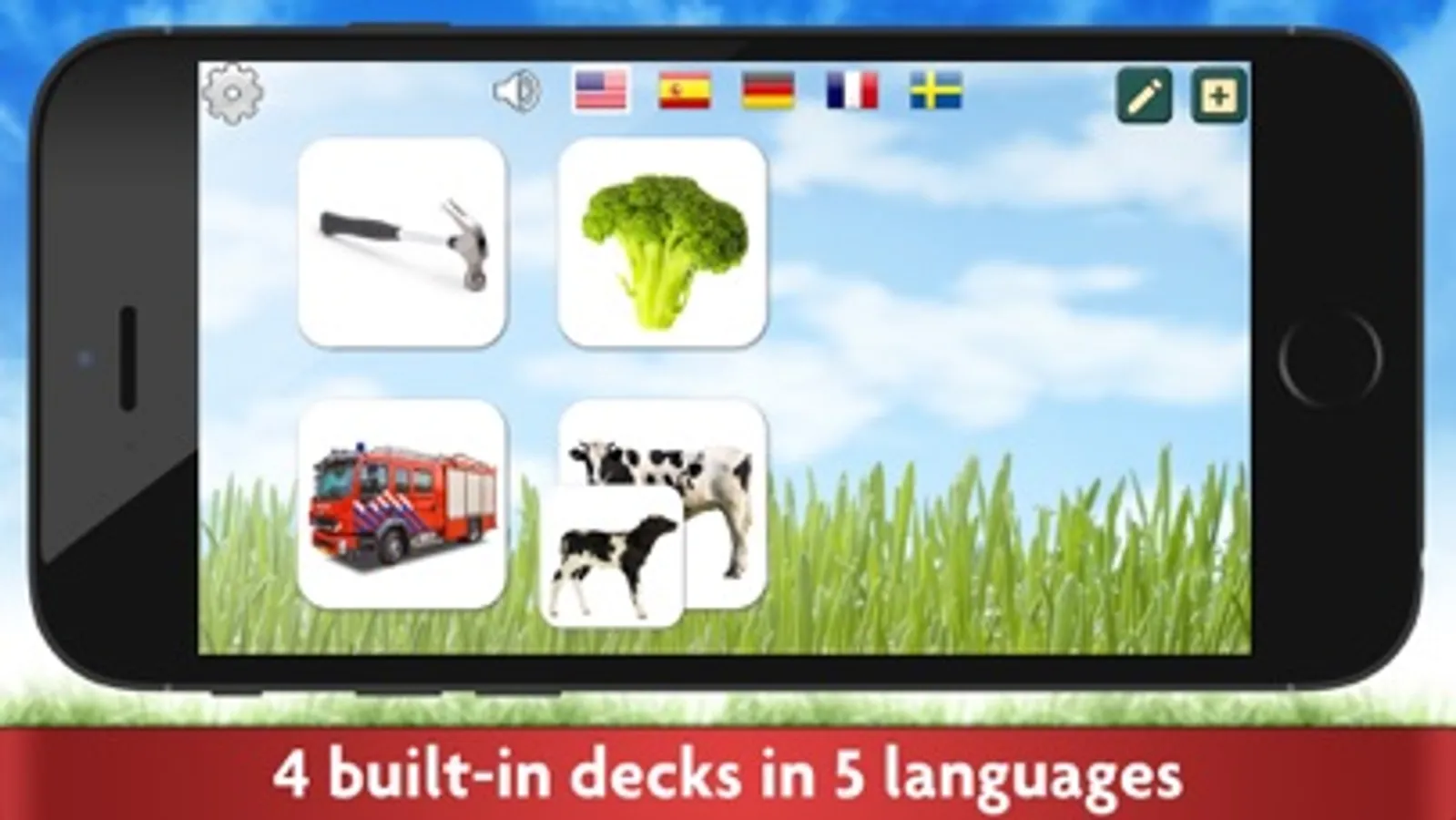 The game comes with 4 high-quality built-in decks to get you started (Vehicles, Tools, Fruits and Vegetables, and Animals), with audio localized in 5 different languages (English, Spanish, German, French and Swedish). However, the real value of MyMemo lies in the educational possibilities offered by creating your own memory decks. For example: