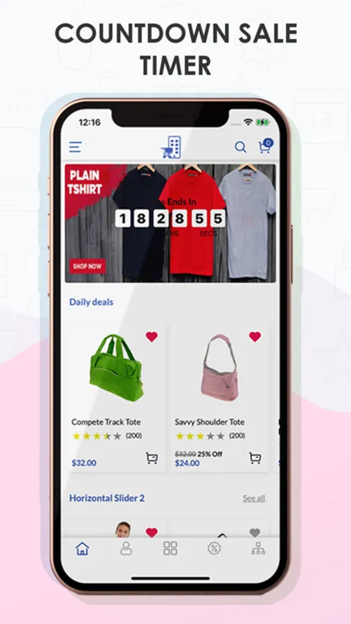 • Fully Customizable Home Screen with Drag & Drop Builder and Countdown timer banner support