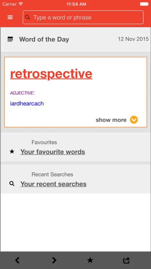• A ‘recent searches’ list to help you return to words you viewed recently;