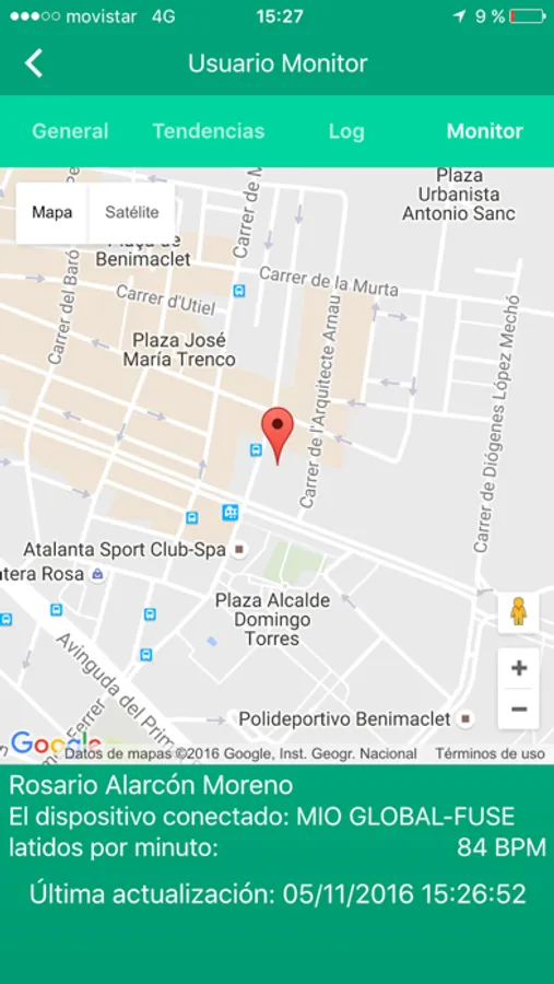 Por lo tanto, es posible recibir alarmas y consultar en tiempo real, la frecuencia cardiaca de un paciente, familiar o amigo, junto a su geolocalización en caso de emergencia (Tras una pérdida de consciencia por ejemplo)