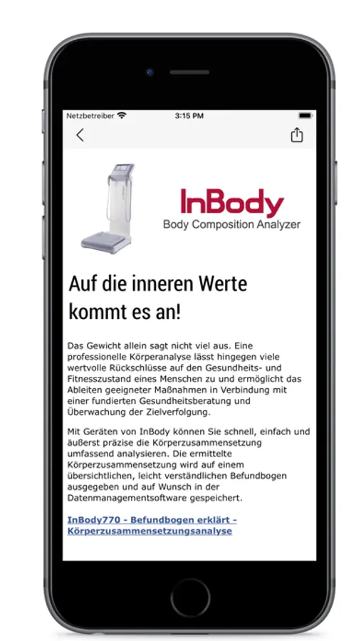 Informationen wie Öffnungszeiten, Kontaktdaten, Studiofotos und Trainingstipps sind griffbereit und können sofort per E-Mail zu Freunden geschickt werden.