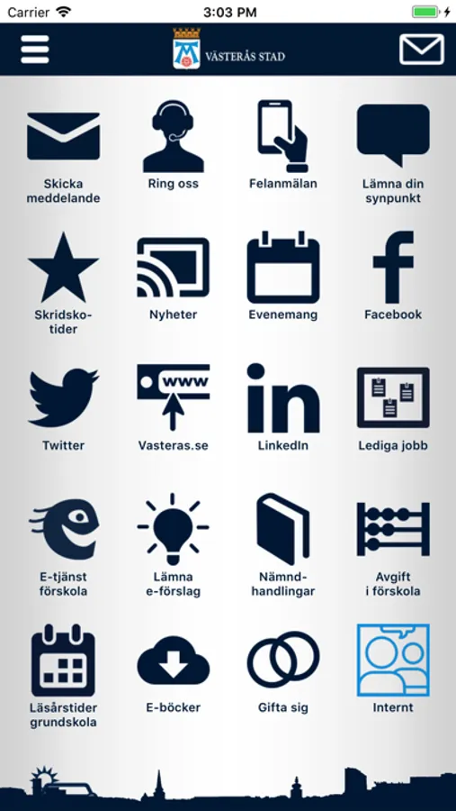 Välkommen till Mitt Västerås. Här är appen för dig i farten. Här kan du lösa uppgifter direkt i mobilen och få kontakt med oss på det sätt som du vill. Appen är under utveckling så nya funktioner kommer hela tiden.