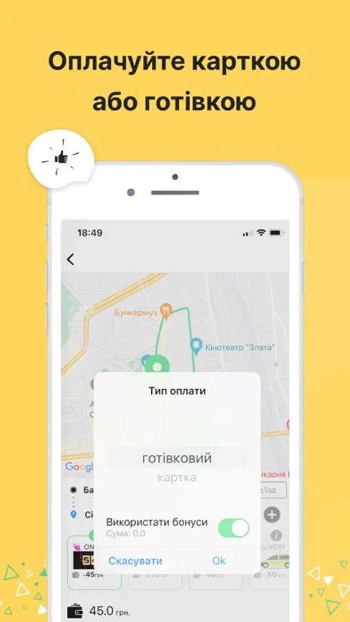 549 - мобільний додаток, який дає можливість замовити поїздку в один клік та легко оплатити її банківською карткою, готівкою чи накопиченими бонусами.