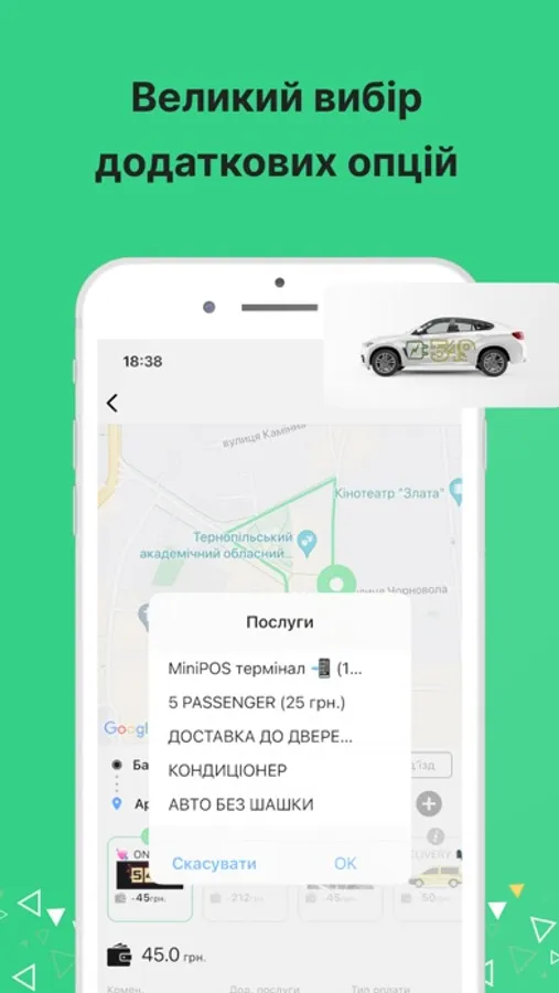 - можливість підв'язати Вашу банківську картку у додатку і оплата за здійснену поїздку автоматично перейде з Вашого рахунку, на рахунок водія відразу після вимкнення лічильника. Тепер не потрібно витрачати час на перераховування коштів та очікування решти.