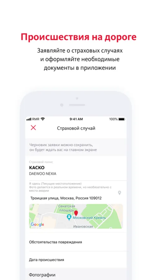 Попали в ДТП, случилась неприятность в поездке, нужен доктор? Приложение в понятной форме расскажет, как и что нужно сделать при наступлении страхового случая, чтобы самому отправить заявление в страховую компанию.