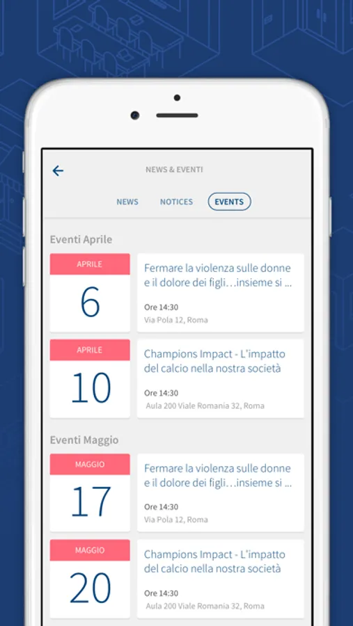 The LUISS App is designed to facilitate the teaching and training experience and make the use of the many services offered by the University to students, alumni, faculty and administrative staff more personalized and effective.