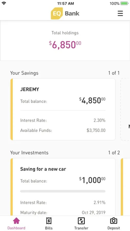 Some other banks take and take when they should be helping you make. That’s why at EQ Bank, we offer high interest on every dollar—without ever taking monthly fees. You can do all of your everyday banking tasks like check your account balances, deposit cheques, transfer funds, pay bills, and send money with our redesigned user-friendly mobile app. You can also buy a GIC in seconds (learn more at the website below) and so much more with updated features to help you manage your money.