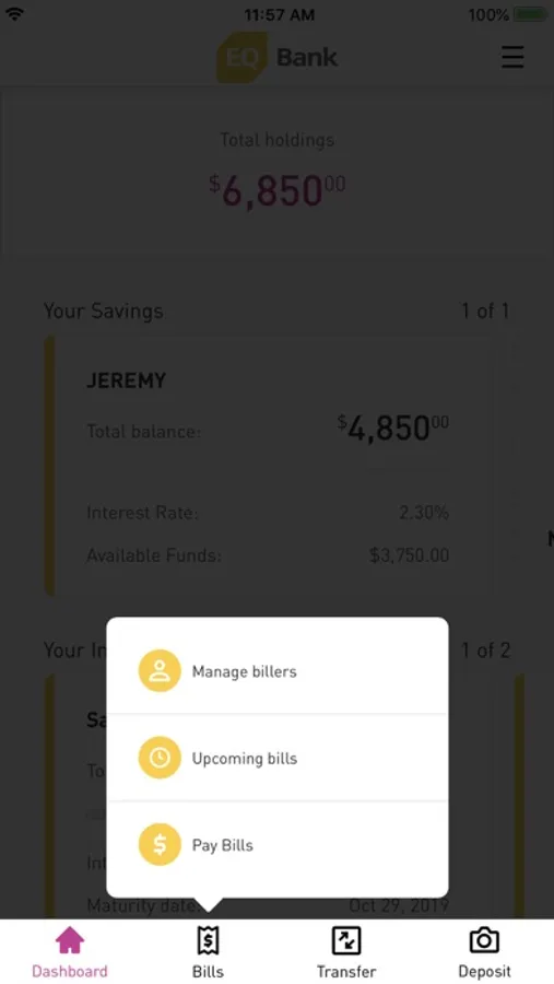 *The EQ Bank mobile app is operated by EQ Bank. EQ Bank is a trade name of Equitable Bank.