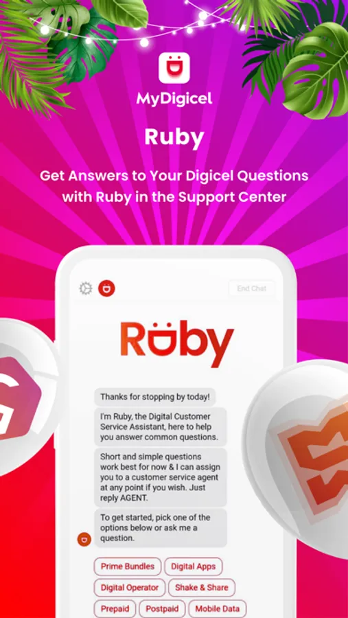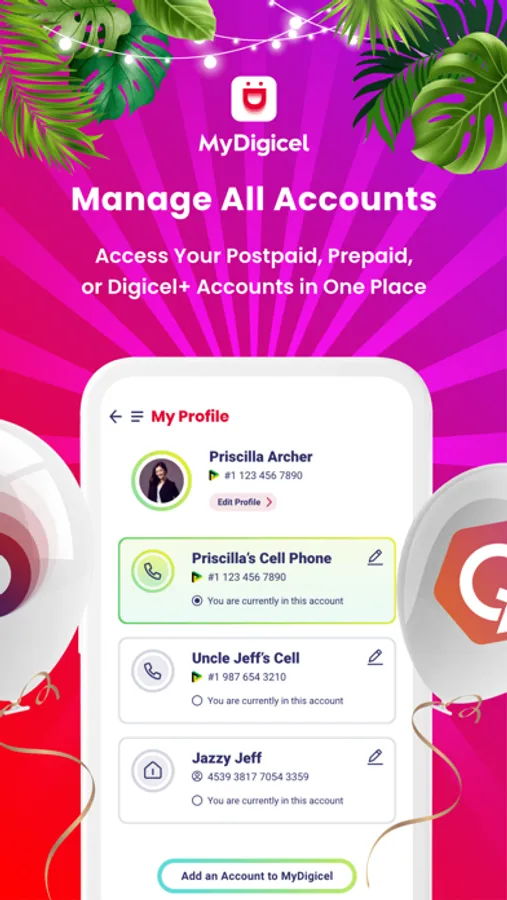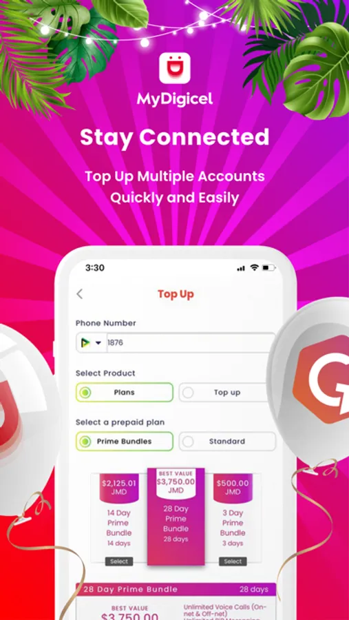 Get the free MyDigicel app to access your Digicel account anytime, anywhere. The app makes it quick and easy to manage your Digicel account from your device.