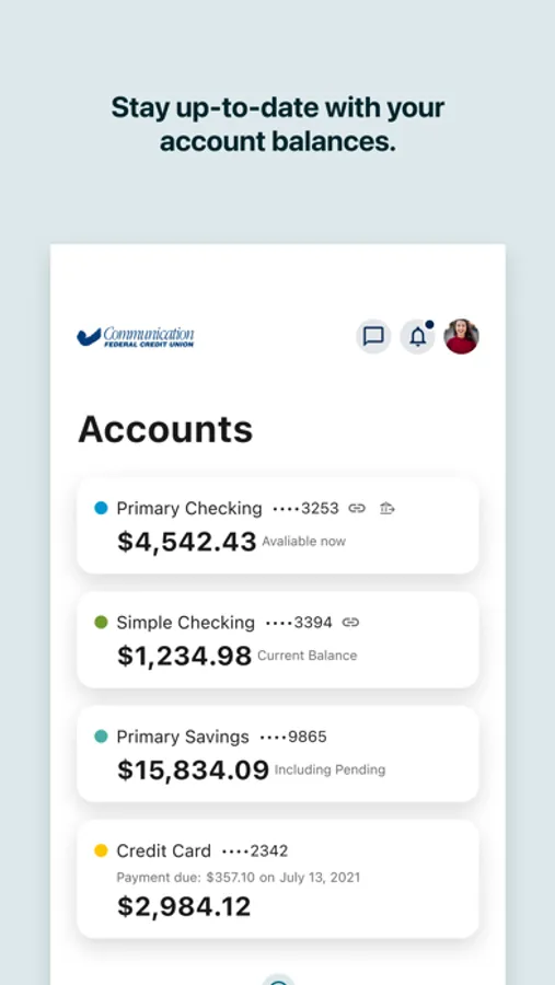 View Account Balances and Available Balances – All amounts are quickly displayed in real-time and are easy to read. You can also access transaction details.