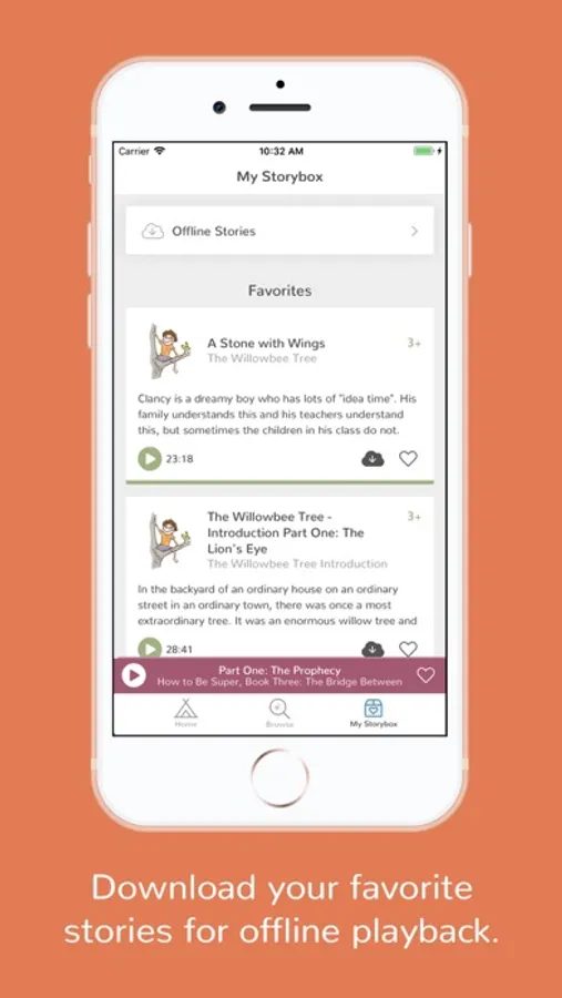• Save stories for offline listening on the plane or in remote corners of the earth