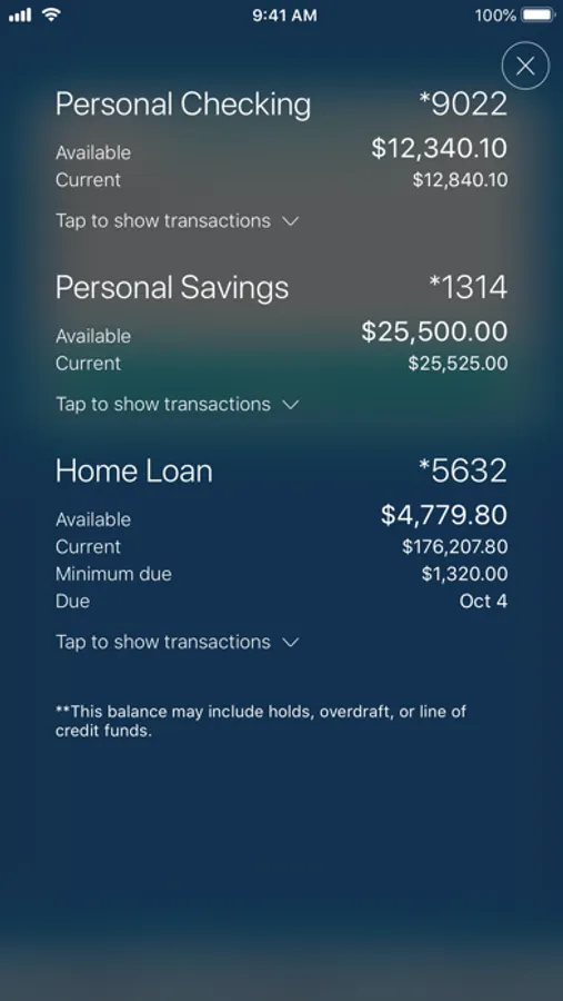 - Check your latest account balances and search recent transactions.
