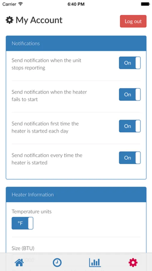 Get notified when your heater is activated, or when something is wrong. Heater didn’t fire when it was supposed, a sensor fails or you lost your Wi-Fi connection? You’ll know when it happens, in real time.