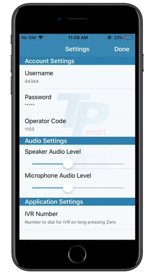 2. Launch TP Smart → Enter Opcode→ Settings→ enter your user name and password.